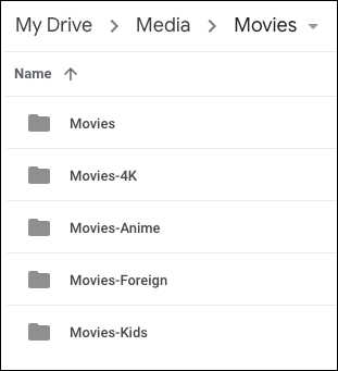 Note: Remember, folders are case sensitive in Google Drive and in Linux (e.g. 4K and 4k are 2 different folders).